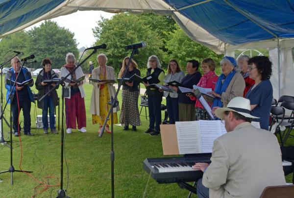 Madrigalia sang at the Platinum Jubilee celebrations in Boxford, accompanied by Ward Baker on piano. Photo by Peter Norris.